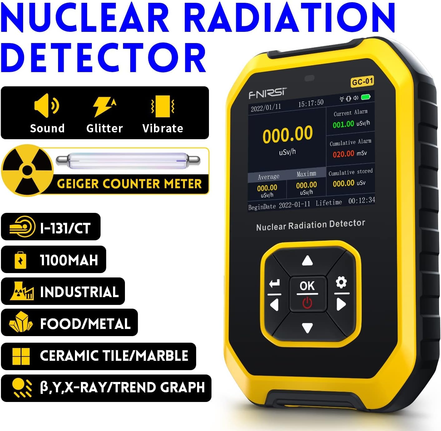 Introducing the FNIRSI GC-01 Geiger Counter Radiation Detector, a smart alarm device designed to keep you safe from harmful rays in your daily life. This multifunctional geiger counter offers a range of features and settings to ensure your safety and convenience.