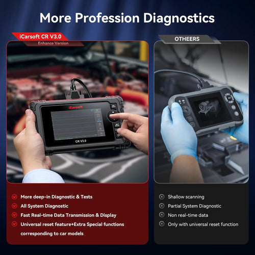 • 10000+ CAR COVERAGE-iCarsoft CR V3.0(ENHANCE VERSION) Car Diagnostic Tool as a professional vehicle fault diagnosis tool, helps you to troubleshoot car issues fast for US&Asian auto makes(since 1996) and European auto makes(after 2001). features full ECU diagnosis and enables technicians to accurately diagnose complex problems. And it will frequently updates and optimizations to cover more new vehicles makes. Multilingual menu reduce language barriers.