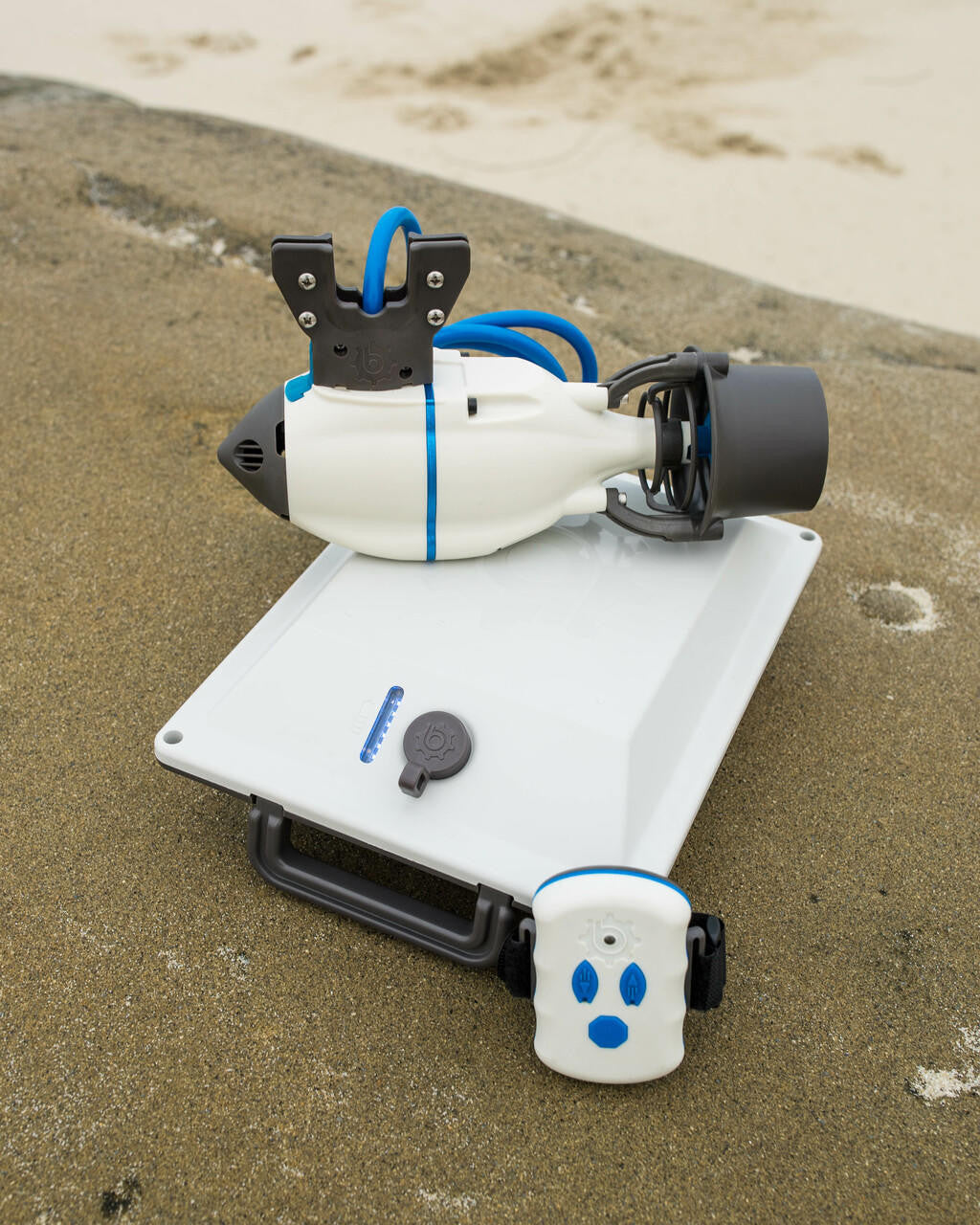 the latest and most powerful jet propulsion system from Bixpy. With 33lb of thrust, the J-2 Motor combined with the waterproof and wireless PP-378 Outboard Battery can power a wide range of personal watercraft.