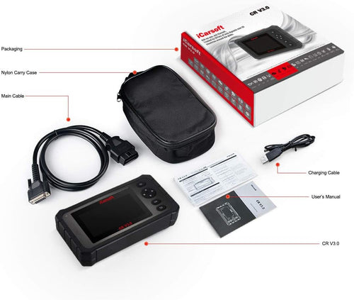 • BEST IN CLASS INNOVATION- iCarsoft CR V3.0 can do it all-reads and clears trouble codes on most systems such as engine, transmission, ABS and airbag etc. Supports OBDII/EOBD, with Ten Modes of Operation, read live data, full ECU diagnosis etc.It automatically detects your car model and scans all modules for error codes. This special technology allows for specific diagnostic functions and testing!