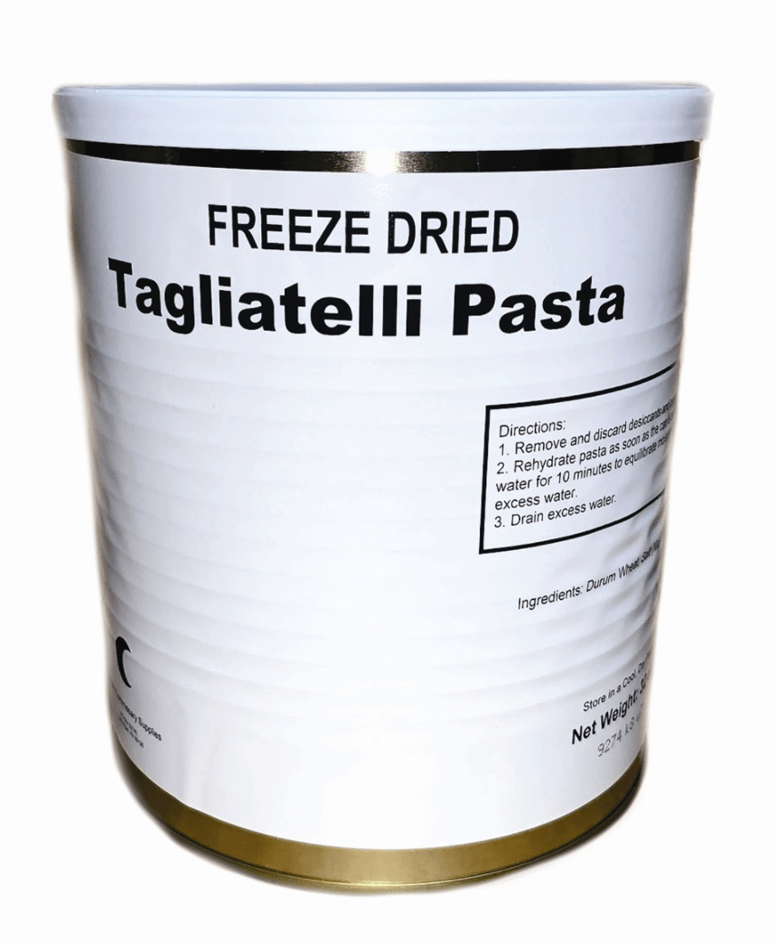 Enjoy the classic Italian taste of tagliatelli pasta with our convenient and affordable military surplus freeze dried option. Made from durum wheat flour, this long and flat pasta is perfect for dishes like lasagna and fettuccine alfredo.