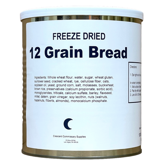 Rest assured, this Freeze Dried 12-Grain Bread is proudly Manufactured, Procured, and Canned in the USA.