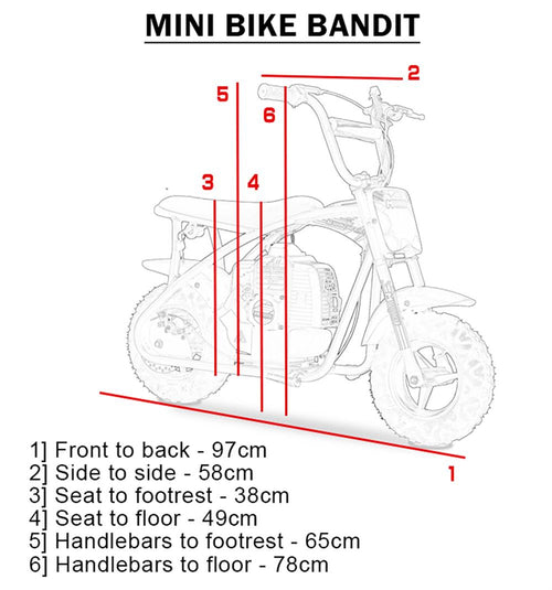 Check out the MotoTec 52cc Bandit Mini Bike! This pocket bike is perfect for anyone looking for a gas powered motor to cruise around on, whether you're a beginner or an experienced rider. With its 52cc 2-stroke engine and automatic clutch, this motorized bike is easy to operate - twist the throttle and go! And with safety features like a throttle limiter and tether kill switch, you can ride confidently, knowing you're protected.