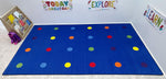 On the Spot Classroom seating rug, classroom rug, seating rug, polkadot rug, colorful dots rug