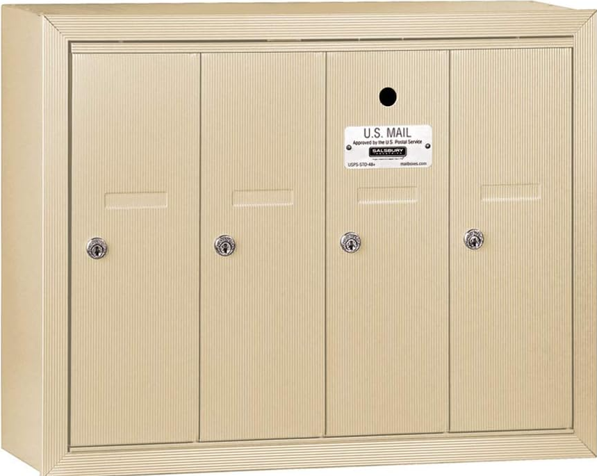 Salsbury Vertical Mailbox 3504SSU Surface Mounted with USPS Access and 4 Doors, Sandstone