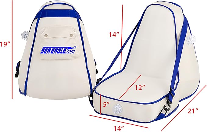 A great inflatable seat that provides extra back support for paddling, rowing or fishing. Allows you to sit 5" off the floor with 14" of back support.