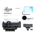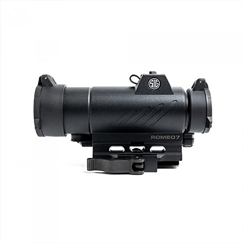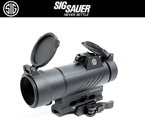 Sig Sauer ROMEO7 full-size red-dot sight provides the civilian and armed professional with a robust 1x aiming solution optimized for today's MSR platforms, regardless of caliber. The battery life lasts an amazing 62, 500 hours (on medium setting) and the low AA battery compartment allows for quick battery replacement without having to remove the sight from the firearm. The high performance lens coating allows for not only excellent light transmission and zero distortion, but also allows for the highest possible dot brightness. Features Low Dispersion (LD) glass lens design with high performance coatings for excellent light transmittance and zero distortion. The 2 MOA dot is optimal for close quarters battle to mid-range target engagement. The ROMEO7 includes both a standard QD mount and a low-rise fixed mount to fit a variety of systems. Dependable waterproof (IPX-7 rated for complete water immersion up to 1 meter) and fog-proof performance. The ROMEO7 was engineered with the centerline of the optical axis at 1. 535" above the top of an M1913 Pica tinny rail interface for night vision compatibility. FEATURES Low Dispersion (LD) glass lens design with high performance coatings for excellent light transmittance and zero distortion MOTAC (Motion Activated Illumination) powers up when it senses motion and powers down when it does not. Provides for optimum operational safety and enhanced 62, 500 hours of battery life in medium illumination setting Ready to mount with a low profile cross bolt M1913 STANAG-compliant mount and 1. 535" QD riser mount Dependable waterproof (IPX-7 rated for complete water immersion up to 1 meter) and fog-proof performance.
