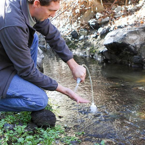 Now a better way to drink safe water right from a stream or any non salt water source! The NEW XStream™ Water Filter Straw by Sagan™ has been tested and certified by independent water laboratories to remove 250 gallons of bacteria, virus, giardia and cryptosporidium. Amazing results and so easy to use. Comes as a 2ft length with a 2ft extension, total 4ft (48") long. Only weighs 5 oz. Includes the XStream Pump.