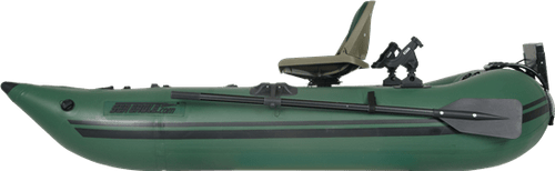 The Hunter Green 285fpb is a stealthy inflatable boat. It's perfect for fishing or hunting - it goes anywhere and sets up in just 5 minutes! Plus, it can fit in the trunk of a car.