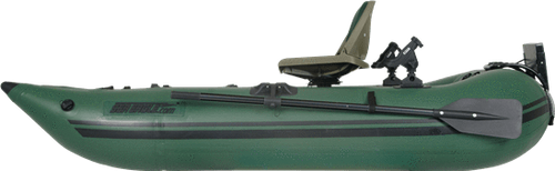 The Hunter Green 285fpb is a stealthy inflatable boat that's perfect for fishing or hunting. It goes anywhere, sets up in just 5 minutes and can fit in the trunk of a car.