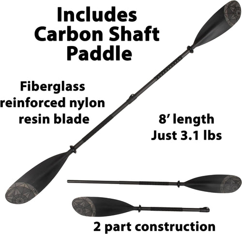 • Durable & Adjustable: Double-end paddle with carbon-fiberglass shaft, asymmetrical spoon blades, and lever lock.