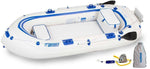 Each Sea Eagle model has its own recommended pressure for full inflation. You should always refer to your instruction manual for the designated pressure. Sea Eagle models SE-8, SE-9, 124SMB and Sport Kayak SE-330 & SE-370 feature an inflation gauge to ensure proper inflation. We also offer two different types of electric pumps (for different types of Sea Eagles) which can be set to the recommended pressures and will shut off automatically once your Sea Eagle is fully inflated.