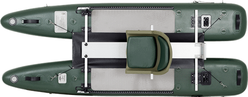 The New Sea Eagle SUPCat10™ uses inflatable Stand Up Paddle Board construction to create a whole new kind of fishing craft. Two side pontoons made of high-pressure drop-stitch inflates up to 15 psi for rock-solid stability. Two front Universal Scotty Gear Head Mounts, two rear Universal Scotty Deck Mounts, and two rod holders come standard with every SUPCat.