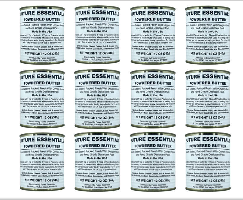 Best in powdered butter with Future Essentials. Our #2.5 can of powdered butter, equivalent to 2 and 2/3 cups, is a multiuse addition to your kitchen.