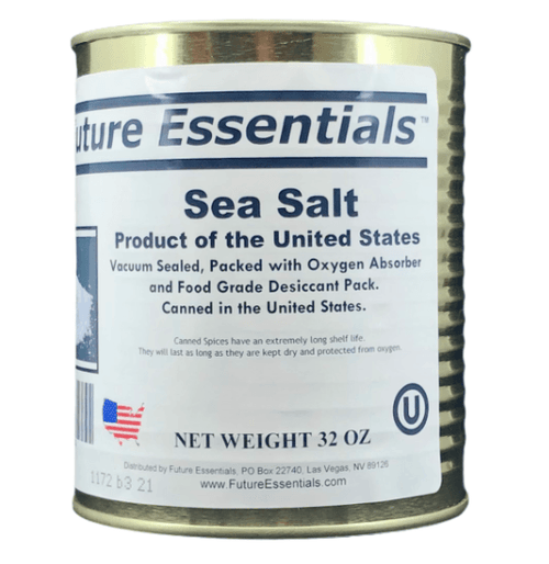 Fine granulated Sea Salt is packed in a #2.5 Can / 32oz