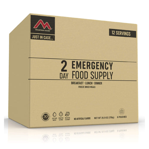 Whether you store it in the trunk of your car or in your kitchen pantry for emergency food storage (or anytime you want a quick meal), Mountain House's Just in Case...® 2-Day Emergency Food Supply is guaranteed to satisfy when you need it most. With approximately 1,705 calories per day, this 2-day kit provides you with three meals a day for two days.