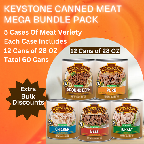 Make mealtime a breeze with our Keystone Canned Meat Bundle! Choose any twelve (12) cans from our selection of tasty meats: Keystone Beef, Chicken, Pork, Turkey, or Ground Beef.