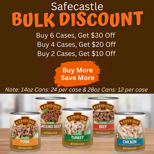 Upgrade your kitchen experience with our Keystone Canned Meat Bundle - now available in a convenient pack of six (6) cans! Mix and match from our delectable selection of Keystone Beef, Chicken, Pork, Turkey, or Ground Beef.