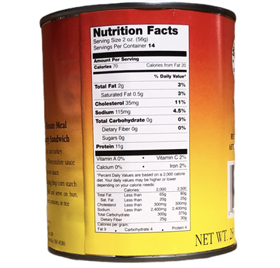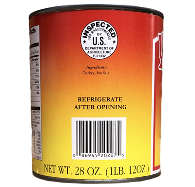 • 28 oz. cans per case (total of 21 lbs. of turkey)