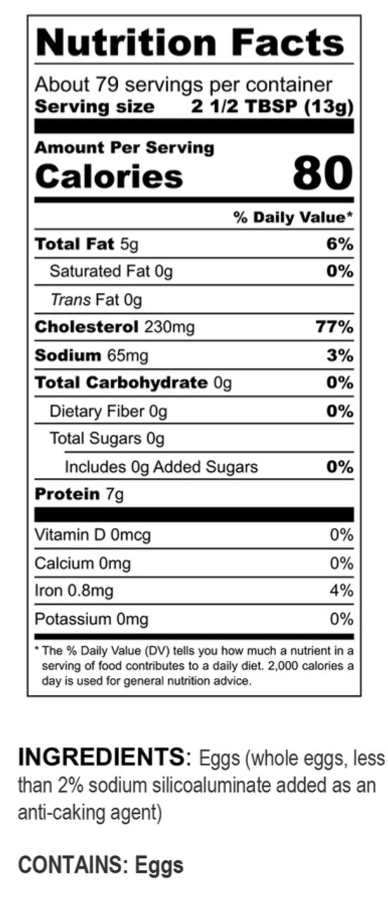 • Convenient and Versatile: Easily rehydrate the powder to make fresh eggs for any recipe. Ideal for baking, cooking, and scrambling.