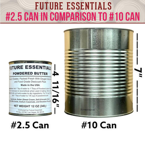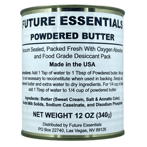 Best in powdered butter with Future Essentials. Our #2.5 can of powdered butter, equivalent to 2 and 2/3 cups, is a multiuse addition to your kitchen.