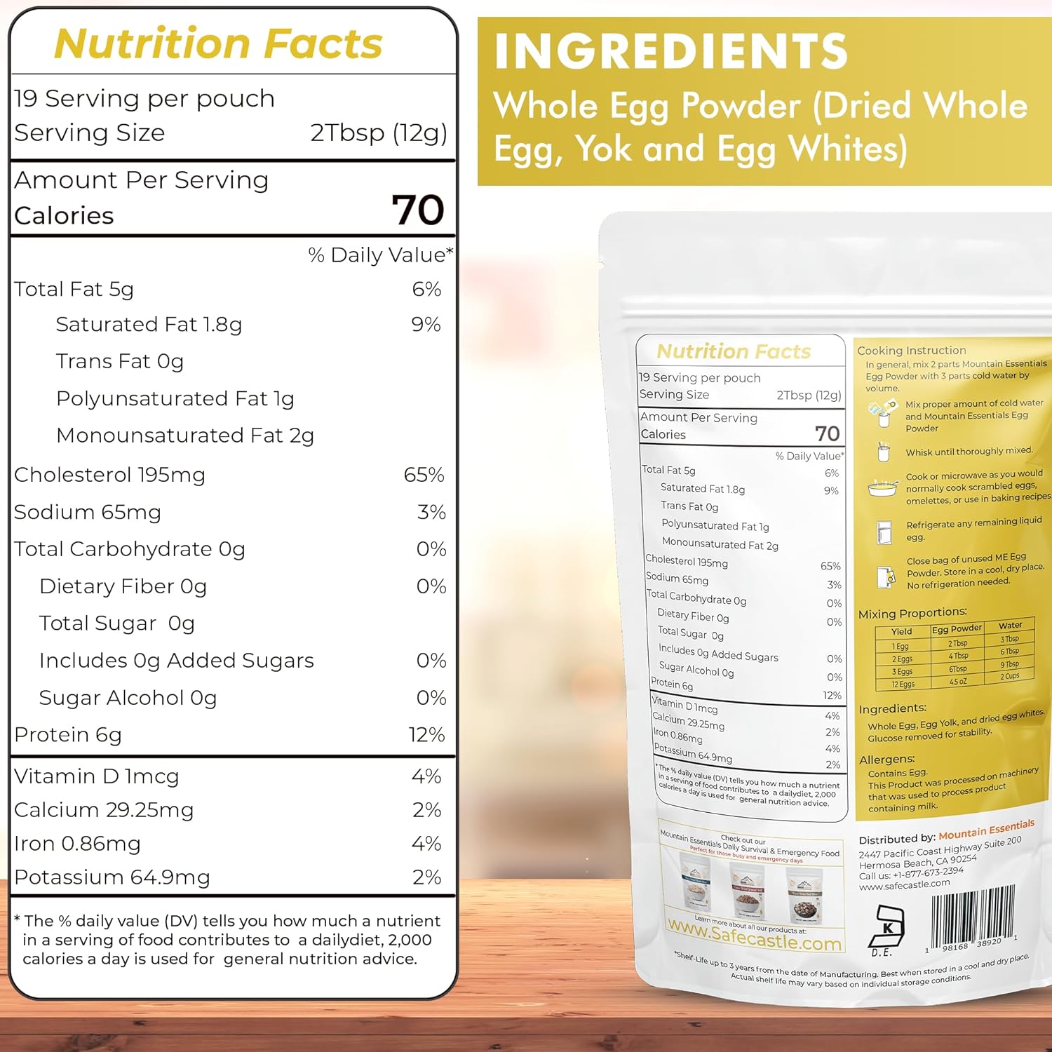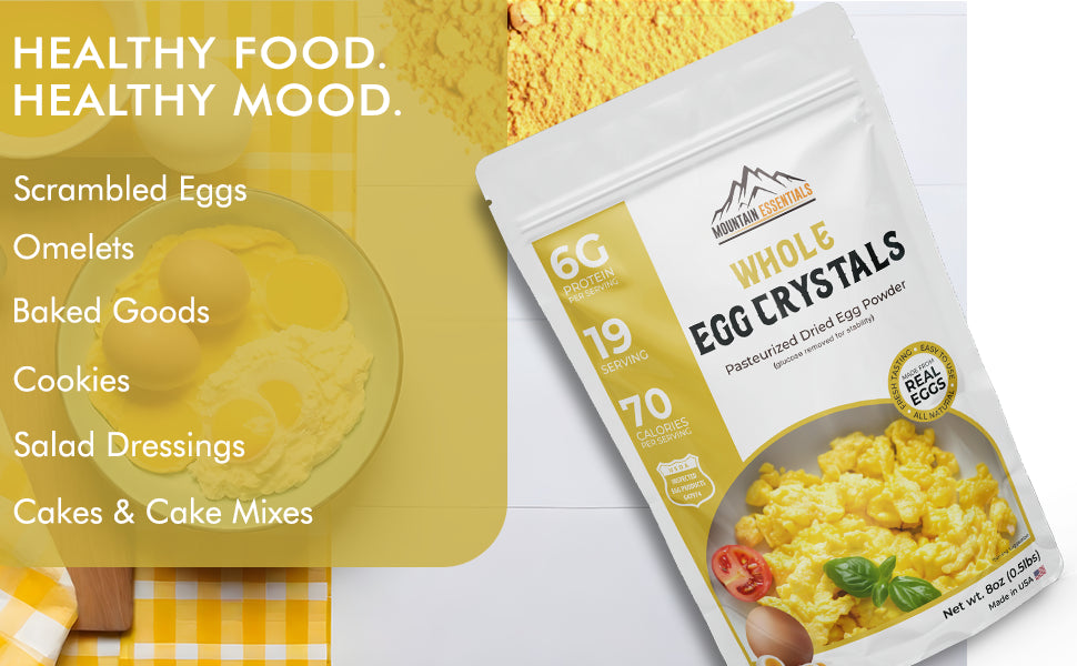 Experience the freshness of eggs anytime, anywhere with Mountain Essentials Whole Egg Crystals—the versatile solution for your cooking adventures!