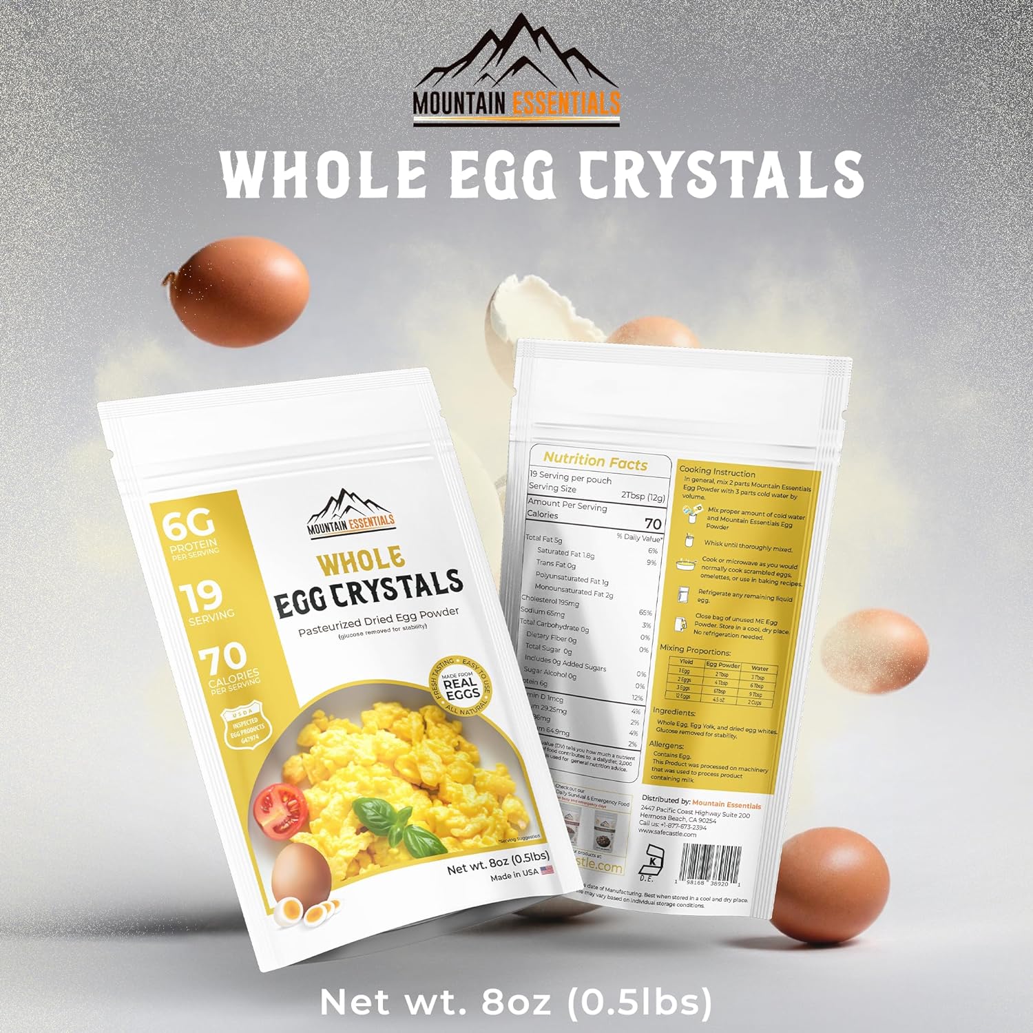 MOUNTAIN ESSENTIALS Whole Egg Crystals Pasteurized Dried Egg Powder 8 Oz Great for Breakfast and Camping Meals