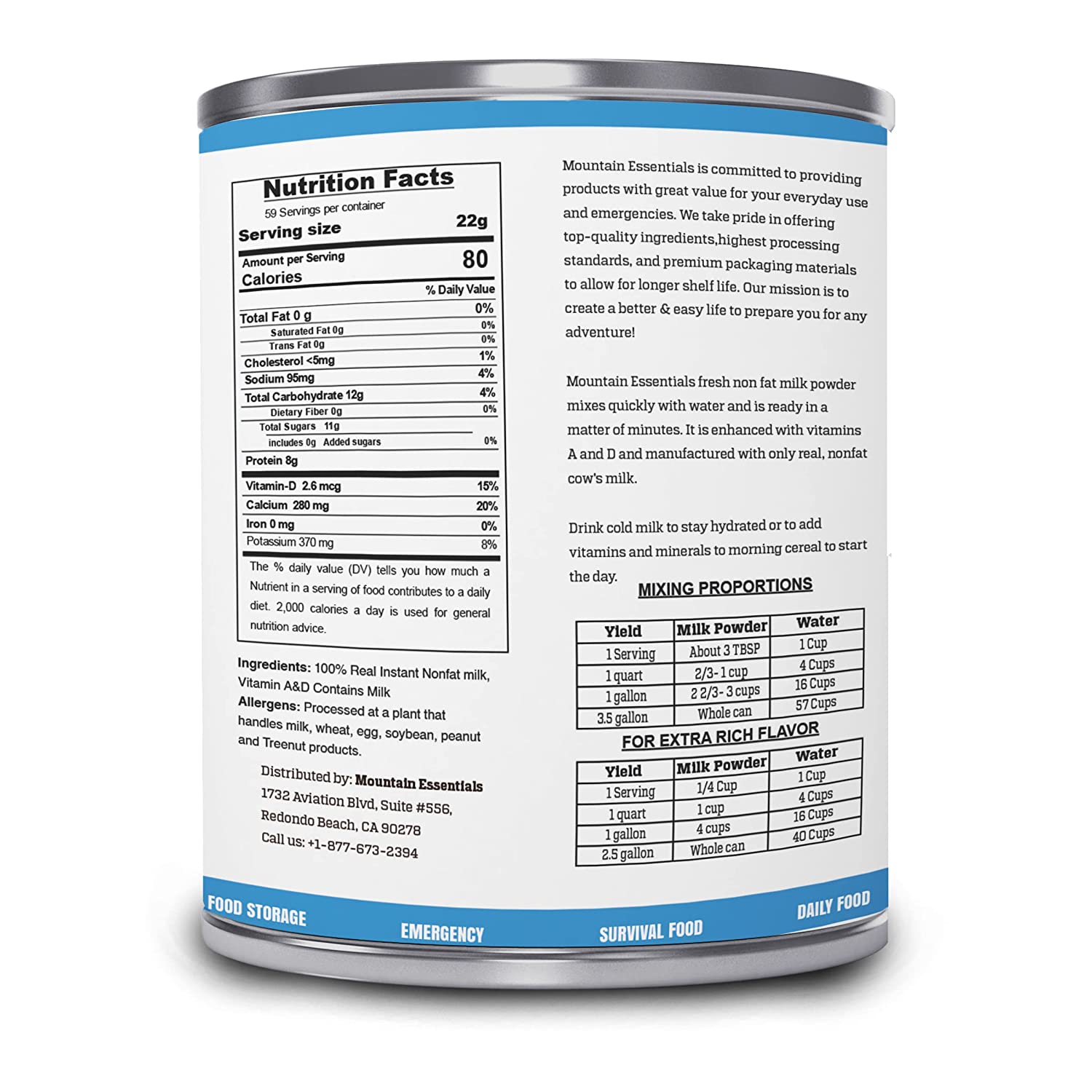 • Mountain Essentials Non-fat milk powder, also known as skim milk powder, is a dairy product made by removing the fat from milk through a process of centrifugation and spray-drying.