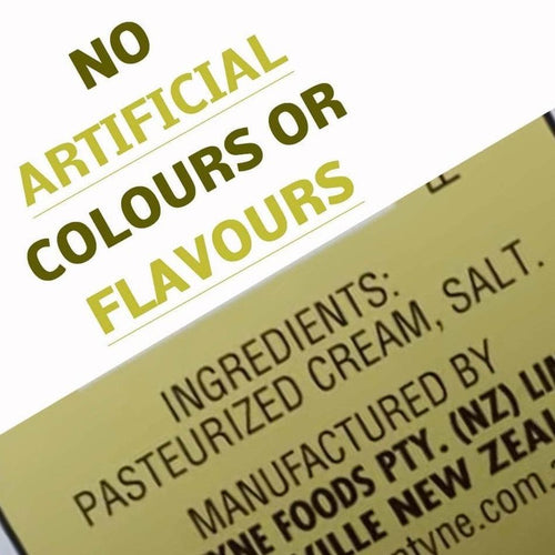 And the best part (besides the great taste), is the list of ingredients: Pasteurized Cream and Salt - that's it!! No preservatives, food coloring or chemicals of any kind, just naturally made wholesome butter from down under.