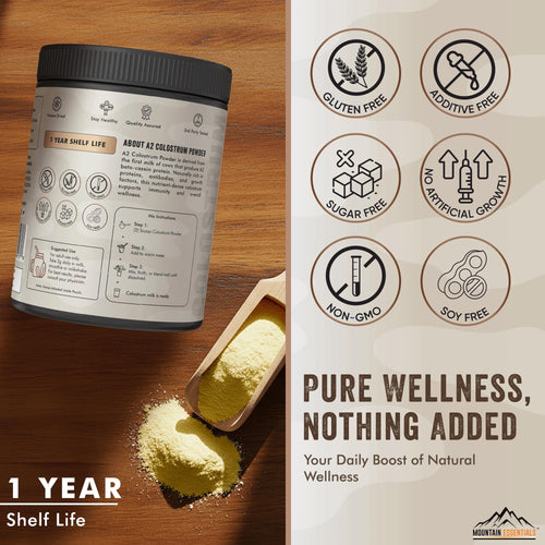 <p>Packaged to maintain freshness, this colostrum powder is gluten-free with a 1-year shelf life, offering flexibility for everyday use, meal prep, and storage. Whether you&rsquo;re looking to enrich your nutrition plan or add variety to your recipes, MOUNTAIN ESSENTIALS A2 Colostrum Powder is a simple and natural choice.</p>