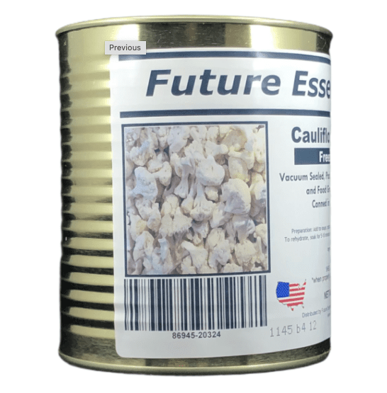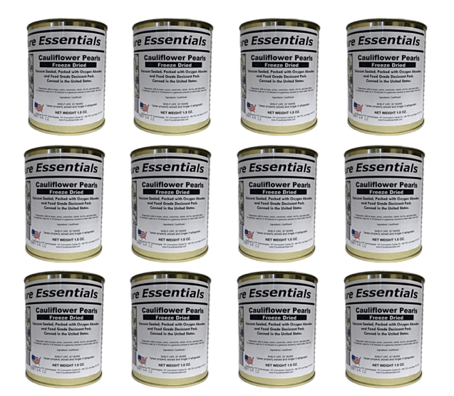 Future Essentials freeze-dried cauliflower Pearls are a great addition to food storage. In addition to Vitamin C, Vitamin K, Vitamin B1, Vitamin B2, Vitamin B6, folate, dietary fiber, omega-3 fatty acids, Manganese, and many more, cauliflower is high in vitamin C, Vitamin K, Vitamin B2, Vitamin B6, Vitamin B6, and many others. You can use it in salads, pasta, casseroles, stews, stir-fries, and soups.