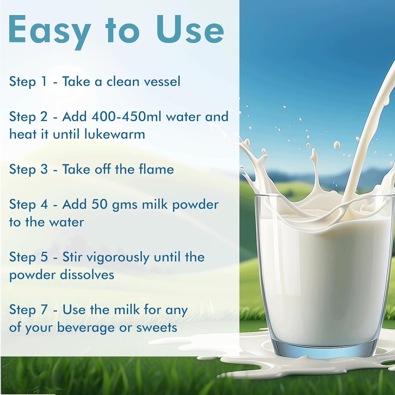 Full Cream Delight: Made from whole milk, this powder retains the natural fat content, delivering a high creamy texture and unmatched taste in every sip.