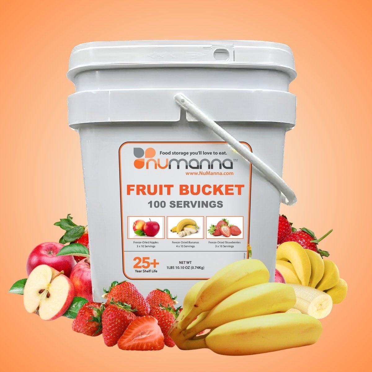 Invest in your peace of mind and preparedness with NuManna's high-quality freeze-dried fruit bucket. With its variety of emergency freeze-dried fruits, including apples, bananas, and strawberries, you can be assured of nutritious, tasty, and long-lasting food options in any situation.