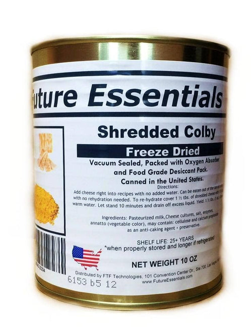 This is REAL grated Colby cheese that melts when you rehydrate it. It can be used in many recipes, such as casseroles, pizza, soups, chilis, and salads. One part freeze-dried = two parts fresh prepared. It is made with American dairy, canned, and prepared in the USA.