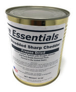 Upon rehydration, this Sharp Cheddar cheese melts! The delicious Future Essentials Freeze Dried Cheddar cheese can be used to make a variety of dishes, including casseroles, baked potatoes, tacos, garlic bread, soups, pizzas, chili toppings, macaroni & cheese, sandwiches, and salads. Made in the United States from USA dairy and canned in the US.