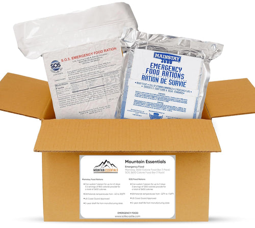 MOUNTAIN ESSENTIALS Emergency Food Rations, featuring Mainstay 3600 Calorie Food Bar and SOS 3600 Calorie Food Bar