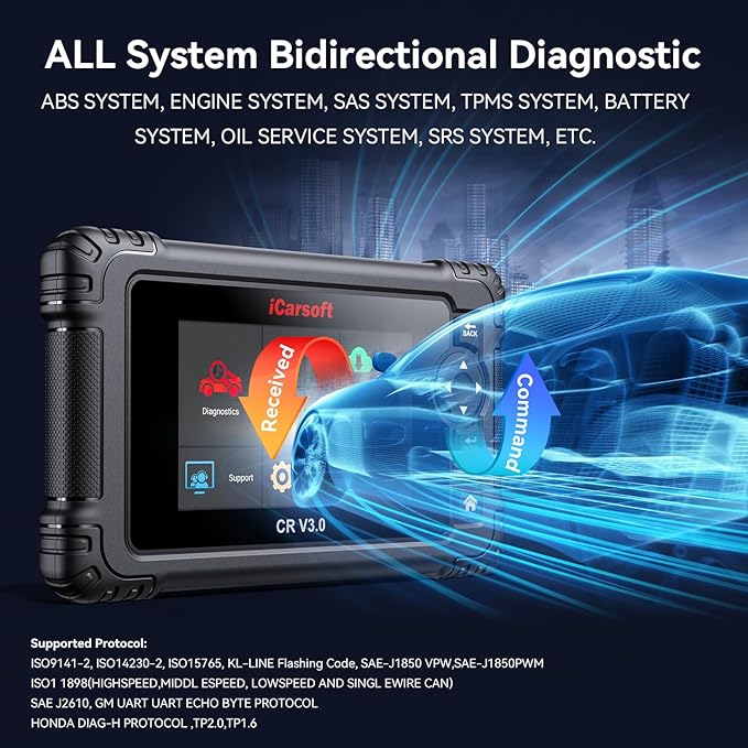 Bidirectional OBD2 Scanner Diagnostic Tool, iCarsoft CR V3.0 (Enhance Version) Vehicle Scan Tool 45 Reset+38 Extra Services,All System, Active Test Code Reader, Auto VIN, Free Update