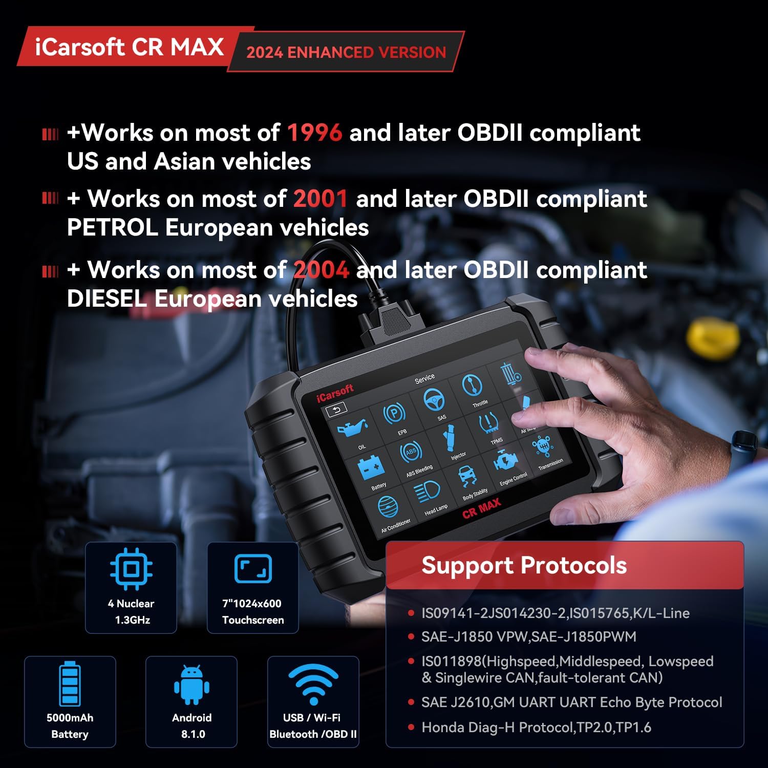• Works on 99% car brands & 10,000+ car models (after 1996) sold in USA . For example: for Porsche, for Mercedes Benz, for Ford, for JEEP, for GM, for Audi, for Nissan, for Infiniti, for Toyota, for Honda, for Isuzu, for Hyundai, for Mazda, for VW, for Sprinter,for Seat, for Skoda, for Suzuki, for Volvo, for Renault, for Alfa-Romeo for Peugeot, for Jaguar, for KIA, for LAMBORGHINI, for Lancia, for Mitsubishi, for Maybach, for Maserati, for MAN LD, for Land Rover, for Peugeot, for ABARTH for Acura, for Bentley etc,(Warm suggestion: Before purchase, please contact iCarsoft for its compatibility to your car, because some car models with specific system ).