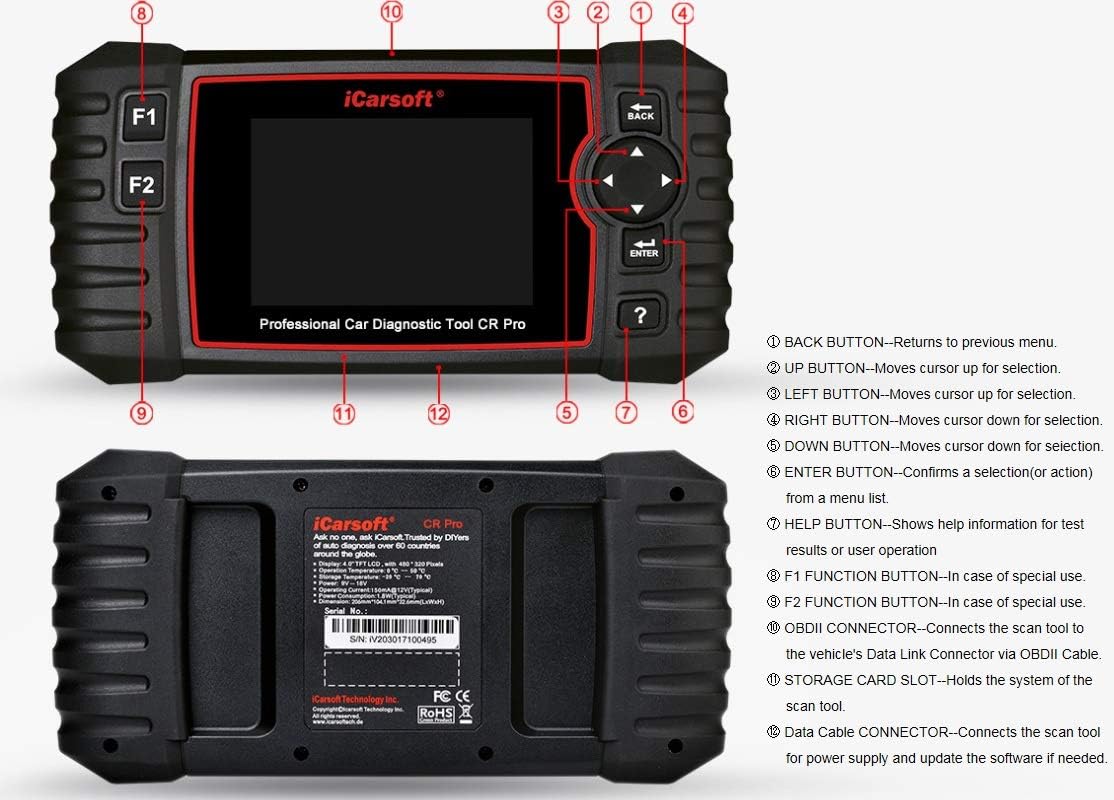 • iCarsoft CR Pro only do reads and clears trouble codes on most of the systems such as engine, transmission, ABS and Airbag etc.