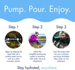 • Its round pump handle makes pumping effortless, and the outlet hose easily attaches to containers using a clip.