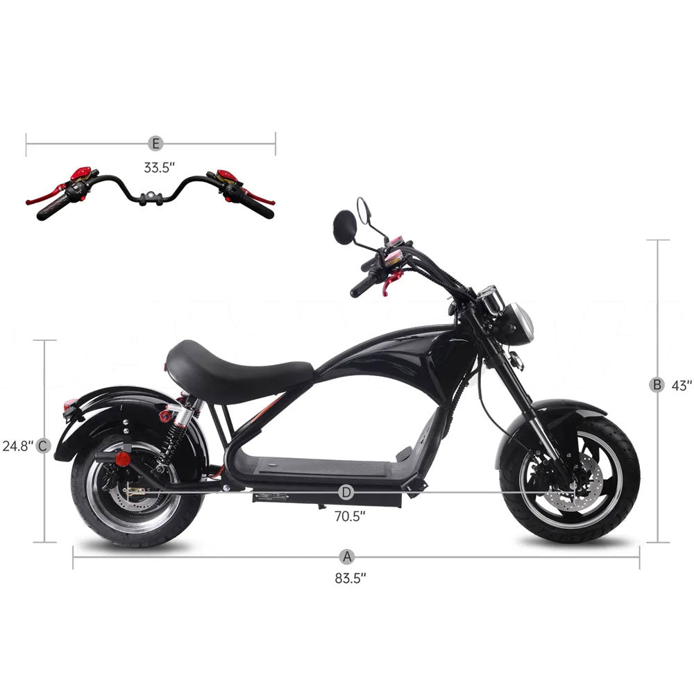 Get ready for an electrifying ride with this powerful scooter. Equipped with a 60-volt 20-ah Lithium Battery, it can reach up to 28 mph and travel over 25 miles on a single charge.