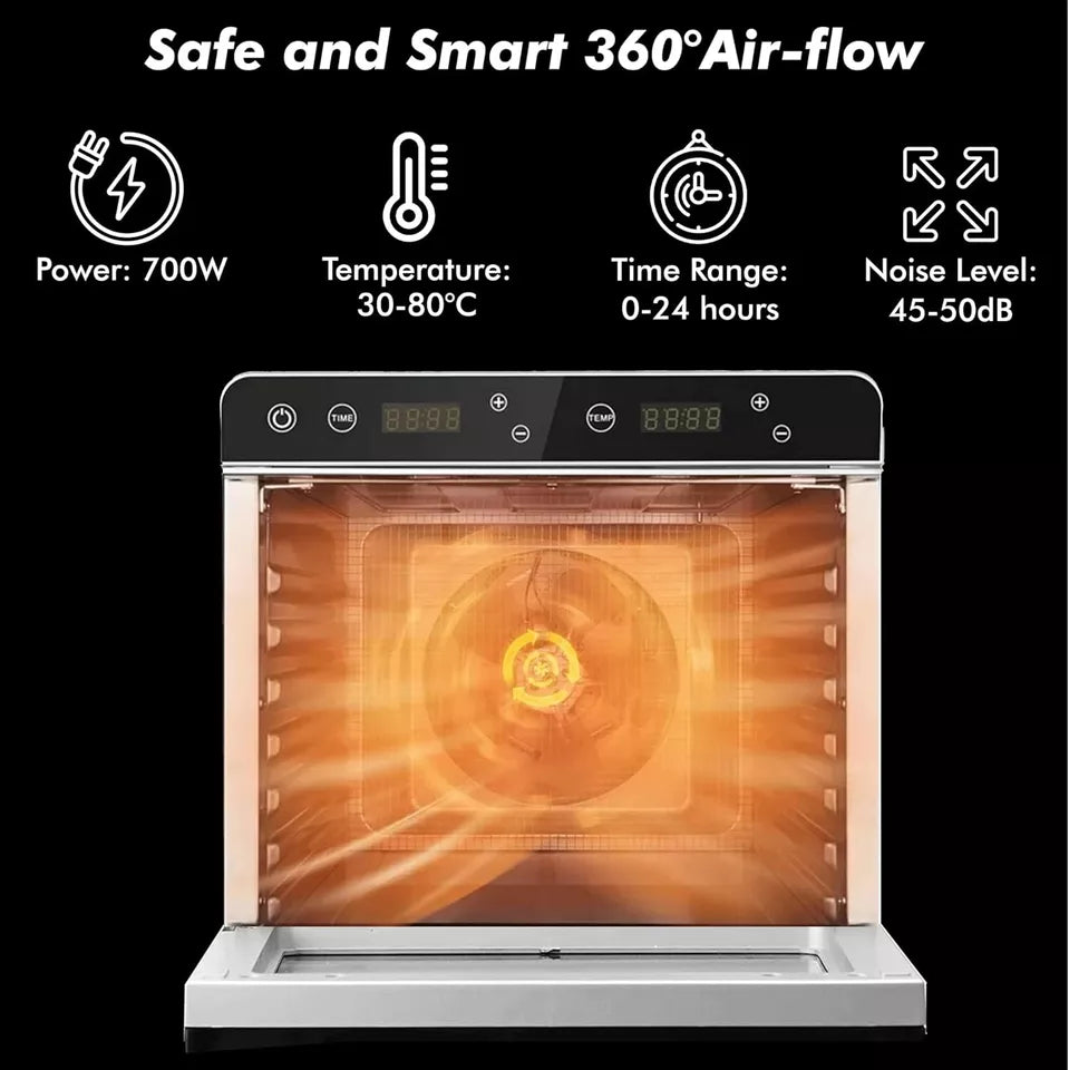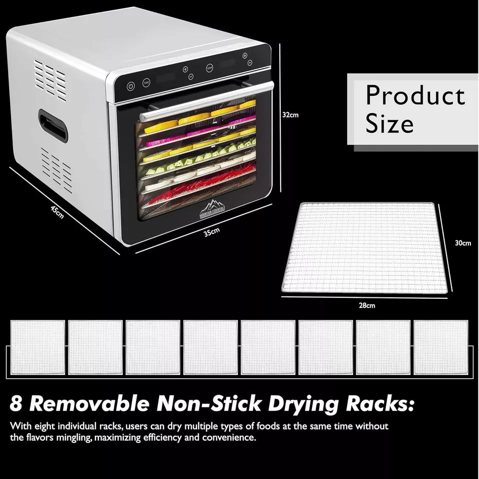 8 Trays Food Dehydrator Machine 700W w ATC, Digital Timer, Recipe Book & Trays