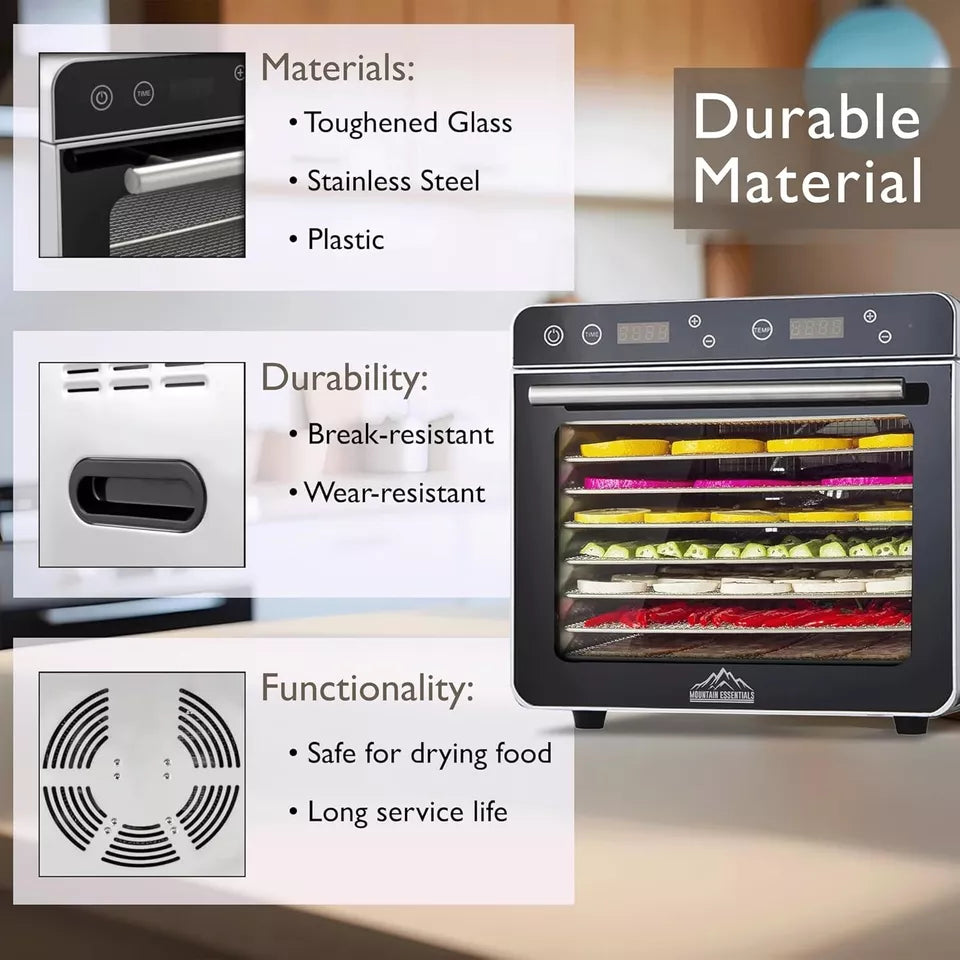 Mountain Essentials 8 Trays Food Dehydrator Machine 700W for Herbs, Meats, Fruit & Vegetables Electric Food Dryer Machine Adjustable Temperature Control & Digital Timer with Recipe Book & Drip Tray, Fast Free Shipping
