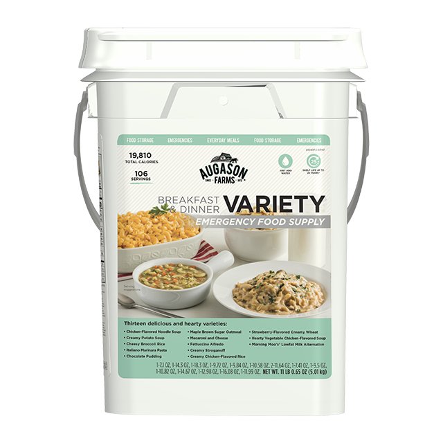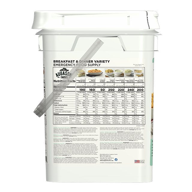 Augason Farms Breakfast and Dinner Variety Pail is an emergency food supply that provides a delicious variety of flavor-packed, ready-in-minutes meal options. It's a go-to food source that you'll be glad to have during difficult times or after a long day.