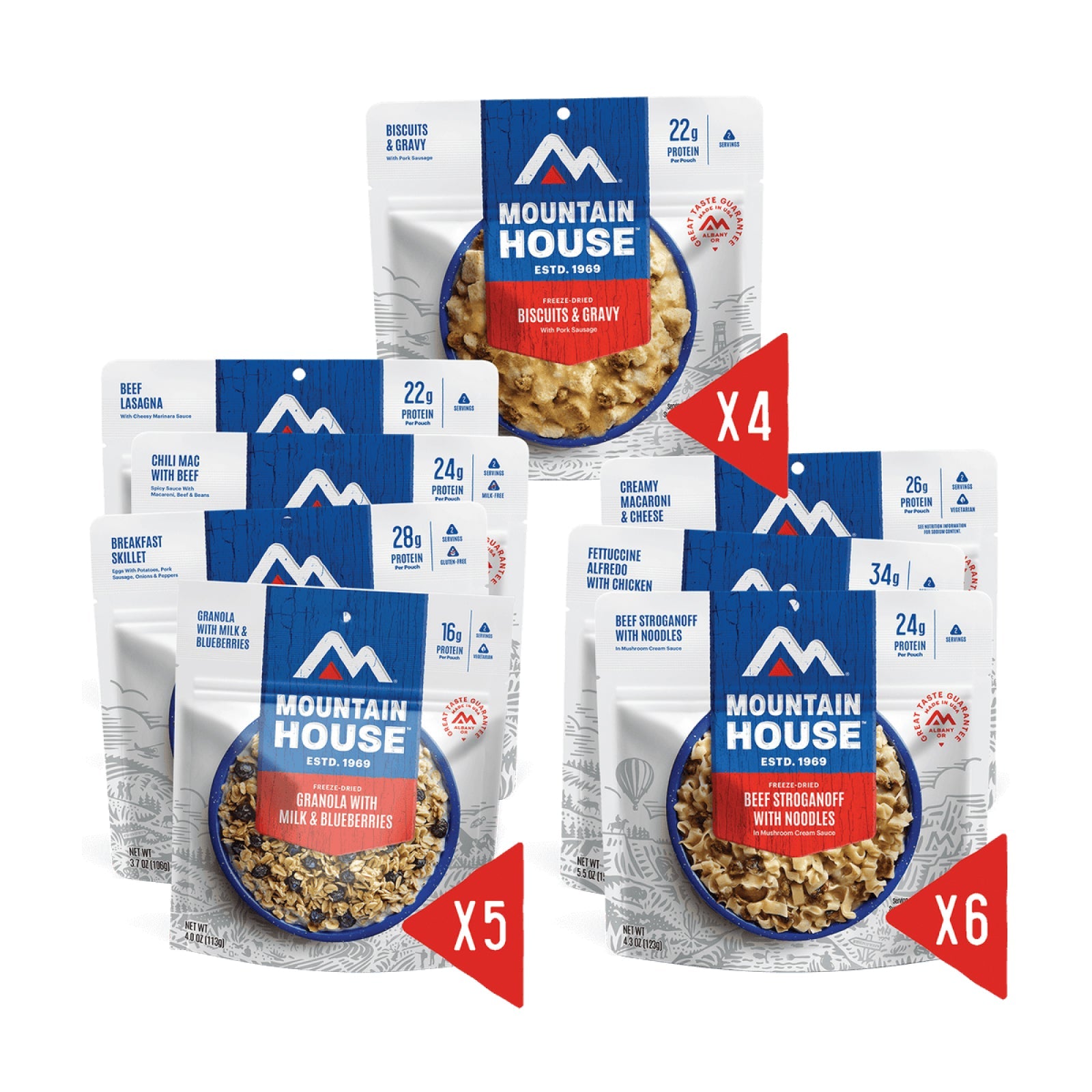 Mountain House meals are freeze-dried to lock in nutrients and taste. Perfect for emergency food storage, camping, or quick meals at home, preparation is easy—just add hot water and eat in less than ten minutes, with no cleanup required.