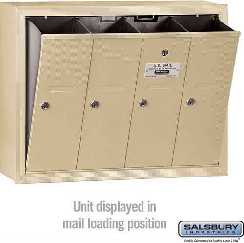 Salsbury Vertical Mailbox 3504SSU Surface Mounted with USPS Access and 4 Doors, Sandstone