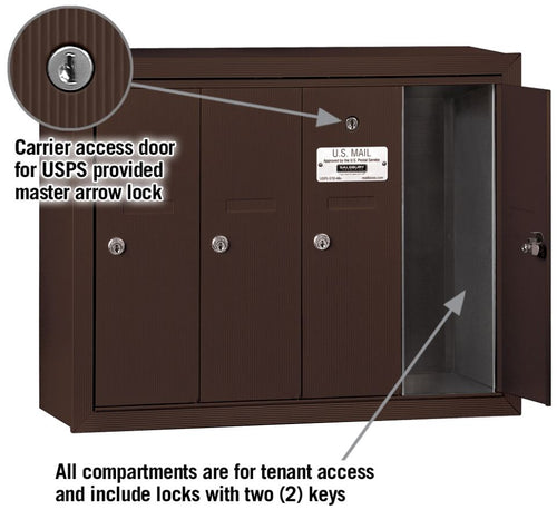 Salsbury Vertical 4 Door Mailbox 3504ZSU - Surface Mounted - USPS Access