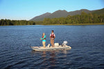 The Sea Eagle PaddleSki 437ps - a stable, safe, and easy-to-stand-on 2 person inflatable boat. This inflatable catamaran kayak is equipped with drop-stitch technology and a high-pressure floor that can inflate up to 10psi for a sturdy platform, while two large side tubes provide additional stability and buoyancy.