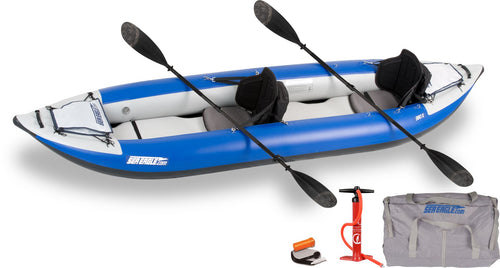 Each Sea Eagle model has its own recommended pressure for full inflation. You should always refer to your instruction manual for the designated pressure. Sea Eagle models SE-8, SE-9, 124SMB and Sport Kayak SE-330 & SE-370 feature an inflation gauge to ensure proper inflation. We also offer two different types of electric pumps (for different types of Sea Eagles) which can be set to the recommended pressures and will shut off automatically once your Sea Eagle is fully inflated.