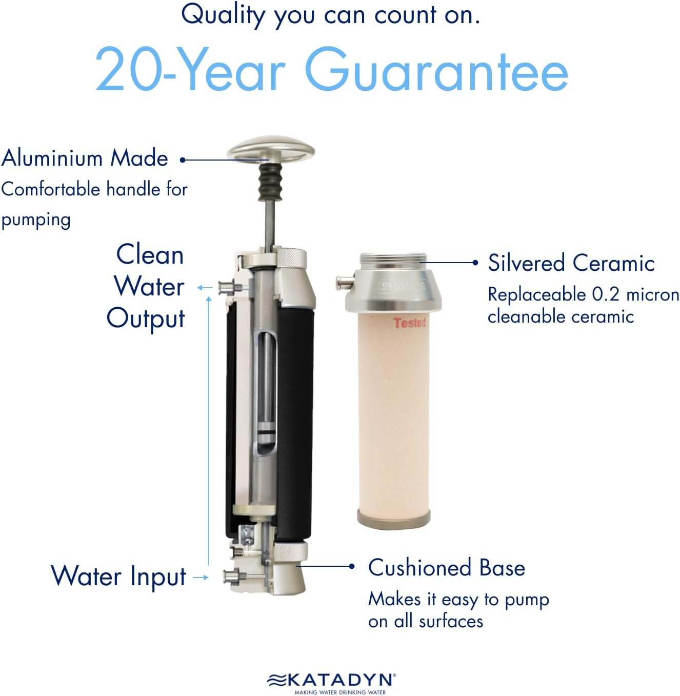 Built to endure extreme conditions, the Katadyn Pocket features a 0.2-micron silver-impregnated ceramic filter that meets EPA standards for bacteria and protozoan cyst removal. Enjoy peace of mind with a lifetime warranty against materials and workmanship.